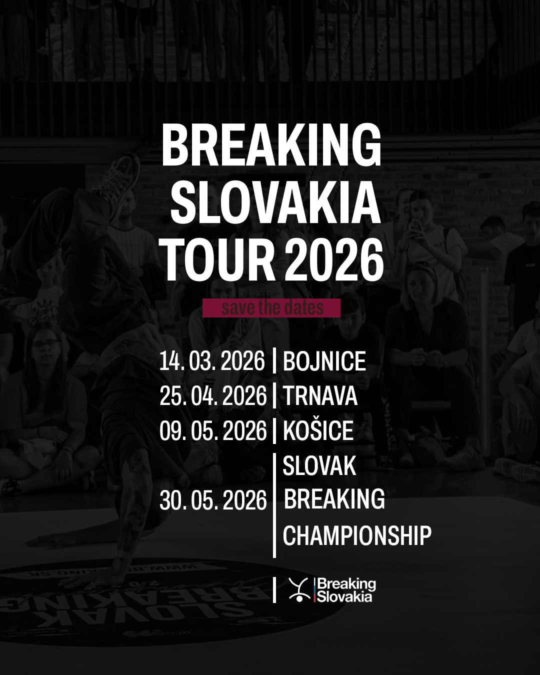 - môžeš sa prihlásiť na súťaže Breaking Slovakia Tour 2025 (súťažiaci budú zaradení do celoročného rankingu)